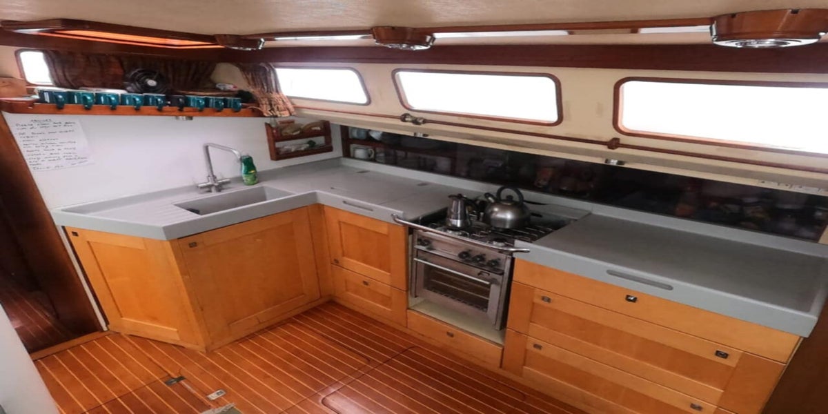 This beautiful Ocean 60 with building number 01 has been built to the highest standards of Lloyd's Register of Shipping by Southern Ocean Shipyards in England. "YEMAYA" is a fast passage making schooner capable of eating up the miles, 200 a day is not uncommon. Yet she has a sail plan that can easily be handled single-handed. . She is equipped with a generator (2007), bowthruster, 5 cabins, autopilot, chartplotter, electric windlass, tender and many extras. YEMAYA is the perfect sailing yacht for a family or a charter/expedition looking to explore all the world has to offer.